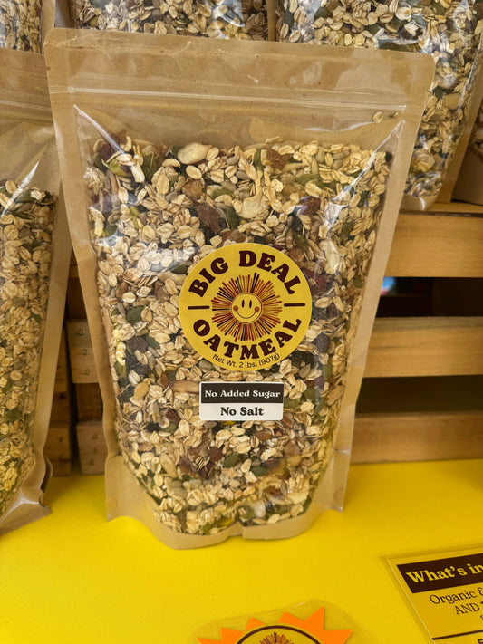 I have loved Big Deal oatmeal since discovering them at an Asheville Farmers Market earlier this year. Amazing ingredients that make me feel full all morning long. I love to add different toppers of fruit and nut butters. Very fast shipping! Highly recommend!