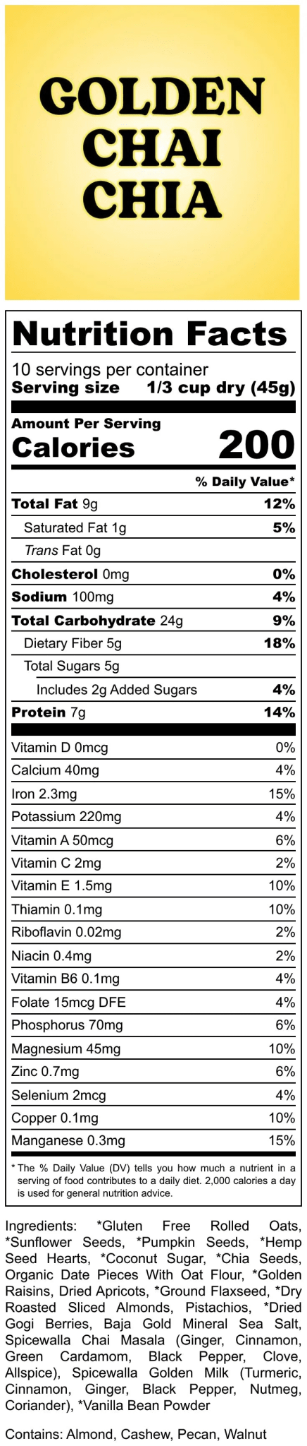 Golden Chai Chia - Organic Superfood Oatmeal Blend
