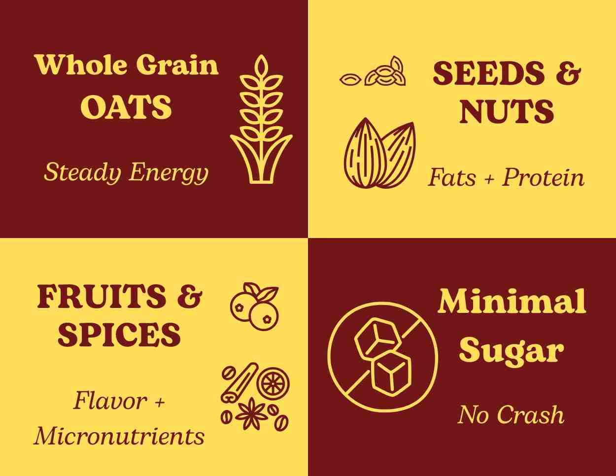 Big Deal Oatmeal is a complete, plant-based breakfast made from thoughtfully sourced superfoods. No fillers. No mystery blends. Just real ingredients that work together.